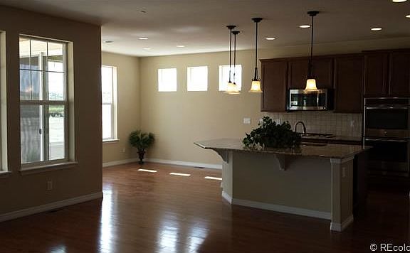 BEAUTIFUL RANCH HOME, 3 BEDROOMS, 2 BATH ROOMS, 3 CAR GARAGE. KITCHEN WITH SLAB GRANITE COUNTERTOPS, FULL BACKSPLASH, BEAUTIFUL HARDWOOD FLOORS, MAPLE CABINETS, LARGE ISLAND WITH WINE RACK, WALK-IN PANTRY, WROUGHT IRON STAIR RAILS, 9' CEILING IN BASEMENT, AND OVERSIZED 30 'X 10' COVERED DECK.