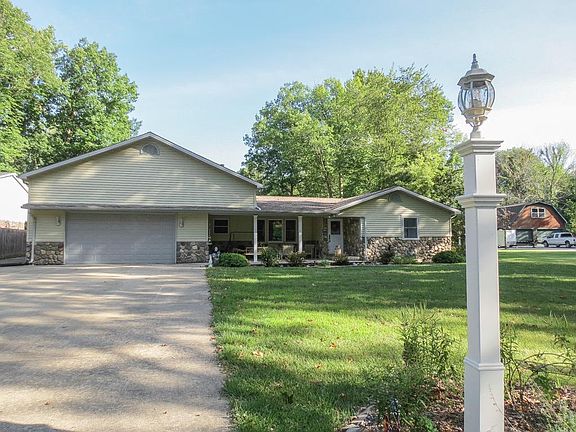 Sprawling Three Bedroom, Two Bath Ranch on Pastoral 2.02 Acre Setting with 3000 SF Nine Car Garage in Van Buren Township. Huge Living Room with Laminate Floor, Large Picture Window and Built-in Entertainment Center. Open and Light Filled Kitchen with Raised Panel Oak Cabinets and Features Dining Area with Sliding Glass Door Leading to Brick Paver Patio Overlooking Fenced and Private Backyard. Three Bedrooms all Feature Hardwood Floors. Absolutely Jaw Dropping 33x93 Attached Heated Garage will hold Nine Cars and Features 18 Foot Ceilings, Eight Skylights, 16 Foot Garage Door for RV's and Semi Trucks, 10 Foot Garage Door, 8 Foot Garage Door, Built-in Air Compressor, Half Bath, Furnace, Glass Block Windows, Portion of the Garage has Radiant Heated Floor. Additional Features of the Home are First Floor Laundry, New Furnace and Central Air, New Tankless Water Heater, Newer Roof, Vinyl Windows Throughout, Charming Covered Front Porch.