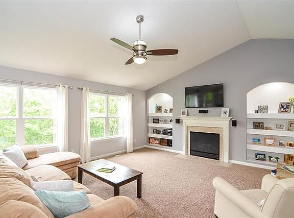Welcome home! You'll love this wonderful open floor plan with lots of natural light! Perfect for entertaining or just hanging out with the family. The entry foyer leads you to the great room with vaulted ceilings and built-in bookcases along the fireplace. In the kitchen you'll find ceramic tile floor, 42" cabinets with crown molding, lots of counter space & a bar height breakfast bar open to the great room & breakfast room. From the breakfast room walk out to the fabulous covered deck with ceiling fan overlooking manicured yard, play area for the kids & woods! 4 bedrooms, 2 full baths with a large master bedroom suite that has a soaking tub and walk-in shower. The lower level has a huge start on finishing for you... the ceiling is ready to paint or add a drop ceiling, walls are dry walled & ready for tape & mud, bathroom is framed & 4th bedroom is ready for occupancy. Additional amenities include 3 car garage, main floor laundry and neighborhood pool.