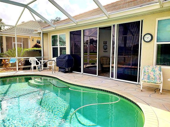 Your New Florida Home has it all in a compact manner! The View alone is what you are going to love! Enjoy the Pool while watching Nature at its best! This Home has been very-well maintained and cared for and has a Beautiful Brick Paver Driveway and Sidewalk and Beautiful replaced Hurricane Windows! Just cleaned and ready for you to move in as it is Totally Furnished...Turnkey is the word! Enjoy the Split Plan layout with the Guest Bedroom and Full Bath on one side and the Master Suite on the other. Walk out to the enclosed Lanai from the Kitchen, Master Bedroom, and Living Room. The Large Master Bedroom has high ceilings and a Master Bath with double sinks, a spacious Shower, a private Water Closet, and a great Walk-in Closet w/Organizers! Relax in the Living Room after a nice meal in the Dining area. Stylish Kitchen is open to the Dinette and has room to enjoy your casual meals. Laundry Room has plenty of Cupboards for storage. Garage has wonderful Cabinets, along with a pull-down Ladder for Attic Storage. Peridia Isle has reclaimed water for the Sprinklers, along with Cable being included in the Peridia Dues. There is a One-Time Capital Contribution of $1,200 and a $200 application fee, along with a $450 Food & Beverage annual amount to spend at the great Clubhouse. Many Activities include: Pickleball, Aerobics, Water Aerobics, Card Games galore, Tennis, Members only Holiday Golf Scrambles, Bocce, Bowling League, Dinner Dances, etc! Ring the Bell when you are ready to put in an Offer!