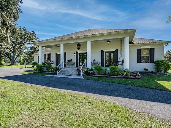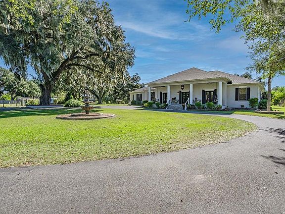 Beautiful Country Estate on 26.4 Acres with Curb Appeal and Architectural Detail that will please the most discerning buyer! As you pass through the Custom Gated Entry and ride up the avenue of trees you will immediately feel the old Florida charm of land well loved. This Luxurious Estate includes 2 parcels with 2 ponds, a separate guest house, an attached in-law suite, an office, a hay barn, a carport, workshop and fertile soils and pastures for cattle and horses. Drive around the circular driveway with a custom fountain and step on the grand front porch with pavers, classic pillars and 3 sets of glass double doors. Feel the worries of the day fade away as you swing on the hanging chairs while enjoy the peaceful outdoors, lazy summer days and breezy evenings or watch the tequila and amber sunsets gently rocking in your chair. You will immediately see a true pride of ownership as soon as you walk into your beautiful home. The double door entry leads to a magnificent Living Room with fine details and custom appointments with crown molding and abundant natural light with expansive views of the pool and pasture. Stunning kitchen with elevated ceilings, Center Island, Custom Backsplash, White Resurfaced Wood Cabinets with Shelf Pull Out Drawers for the pots and pans, Granite Countertops, Black Stainless Steel Appliances, Water Filtration System and large Walk-in Pantry. Beautiful Brick wall in the living room and the kitchen creates a cozy and inviting ambiance to the room. Plenty of space with a Breakfast bar, separate Wet Bar and eating space next the kitchen in addition to the formal dining room for entertainment and family. This 5,195 SqFt house boasts all the appeal and luxuries of the finest homes in the area. The split bedroom floorplan provides privacy and the Master Suite has a large walk-in closet with sitting area and master bath with double sinks, shower and Claw Foot tub. After a long day spend your peaceful evening relaxing in your backyard oasis next to your pool and spa with Custom Paver Patio or sit and enjoy the fire pit by the newly refinished pool. Enjoy guests around the backyard Custom Fireplace and Covered Outdoor Bar. ROOF 2020, POOL PUMP 2021. This home is Centrally Located with easy access to I-75 and within 1 hour driving to Orlando, Homosassa Springs, Hernando Beach, Tampa International Airport, Natural Parks and all that Florida living has to offer.