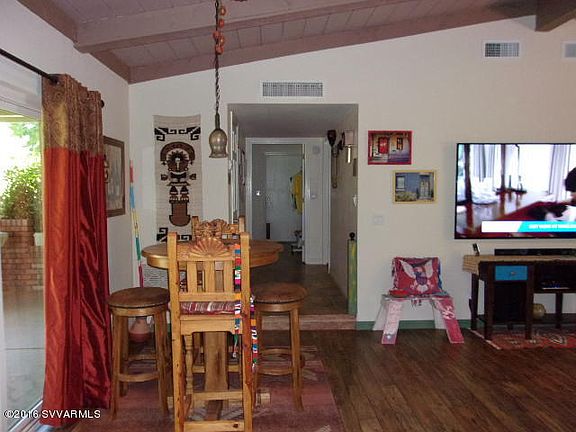 RIMROCK, Home with custom touches throughout, beamed ceilings, large rooms and storage space. Open living room, woodstove insert, natural light from the skylights and bay windows. Black granite sink and butcher block countertops in the kitchen. Large guest rooms w/ceiling fans, large closets. Guest bath has oversized walk-in shower. Master bath has custom-tiled shower and counter tops, hand painted sinks and separate soaking tub. Large utility room has a folding table and upper cabinets. 2 car garage with work benches and upper and lower cabinets for added storage. Sit and relax or entertain from the covered rear patio. Back yard is fully fenced with garden area, fruit trees, rose bushes, lush green grass. Property has several varieties of trees and shrubbery for added privacy.