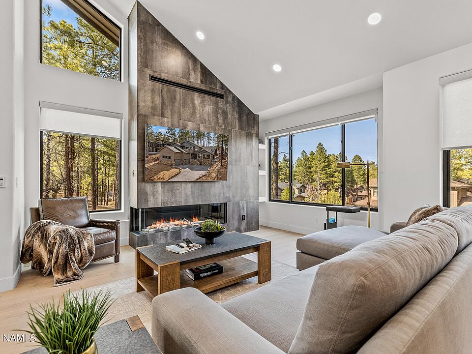 Custom, luxury new build! If you want the lifestyle offered in Flagstaff Ranch CC, look no further. This home has beautiful views of the forest and Snow Bowl. Not to mention the amenities within the community: golf course, health club, pickle-ball, pool and more! This modern home focuses on high-end finishes throughout: high ceilings to natural stone; oak flooring to stainless steel cable rails along the stairs. You imagine yourself in this home, enjoying the gourmet kitchen: thermador appliances, Quartzite countertops, self-closing cabinets and a built-in wine cooler. Surround sound speakers wired throughout. Beautiful master suite. Split floor plan. The second floor offers a living area with a wet bar, fireplace, and bonus/office room. Garage is finished with epoxy floors. Owner/Agent