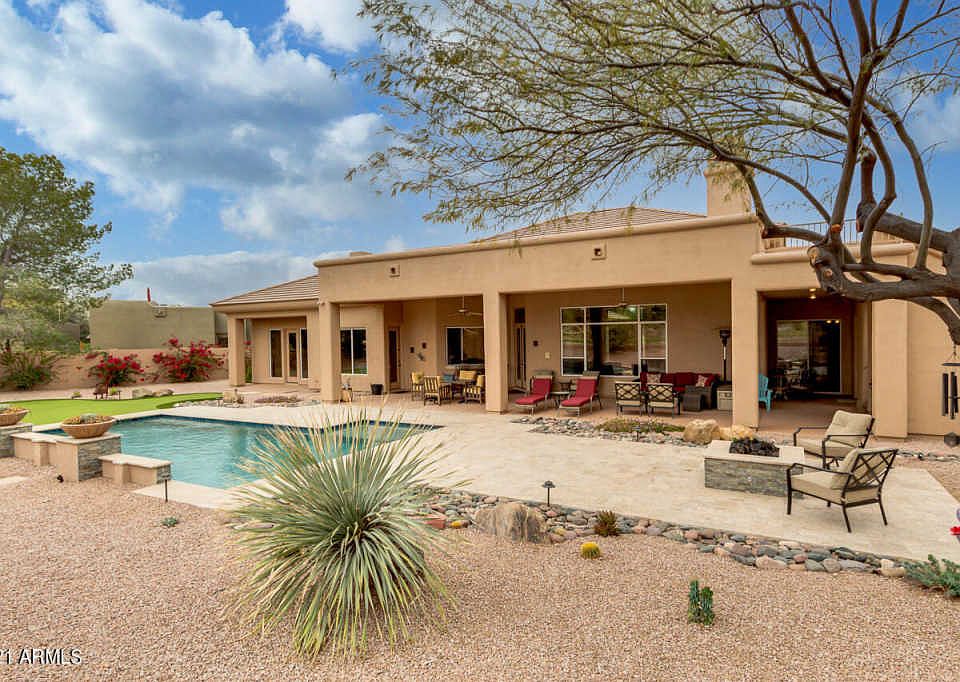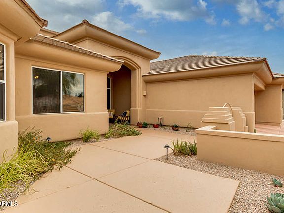 Stunning home located on a golf course lot in Red Mountain Ranch! From the moment you enter, you are greeted with an awesome great room boasting a gas fireplace, 16' ceilings, tons of natural light & views from the start! The luxury kitchen is equipped with a plethora of honey oak cabinets, center island for prep & breakfast bar, and stainless appliances. Roomy master retreat offers a private patio, gas fireplace, and the bath - jetted tub, double sink vanity, a step-in shower with dual shower heads, and a large walk-in closet. The backyard is to die for! Modern pool with 3 cascade waterfalls, gas firepit, personal putting green, covered patio, mountain views from the gorgeous balcony, and amazing views of the 9th fairway behind.