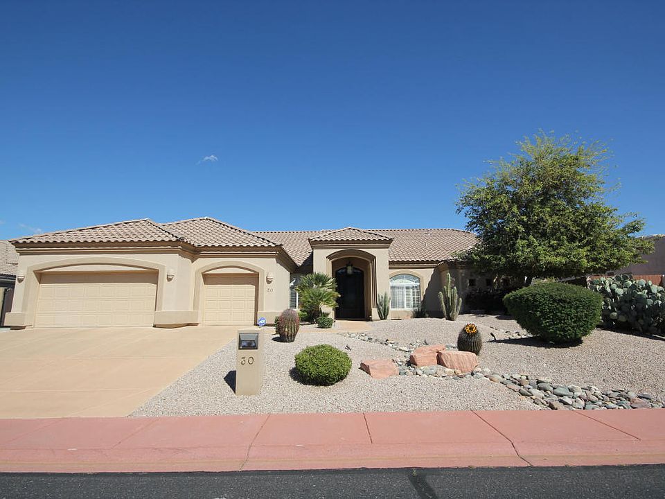 This gorgeous custom is located within the desirable Country Club Estates community of Red Mountain Ranch. Meticulously maintained! Home offers a split floor plan; 3 bedrooms, 2.5 baths, office, great room, and both formal dining plus a breakfast room. Attention to detail, beginning with the exquisite iron front door. Polished hard wood floors will welcome you upon entry, with pool and golf course views beyond the great room windows. Great room features a stone faced gas fireplace, plus a Stone Creek entertainment center, including the large flat screen TV(both to convey). The adjoining kitchen offers Electrolux Stainless appliances, granite counters and large work island. Lots of storage space....(CLICK ON MORE)