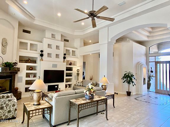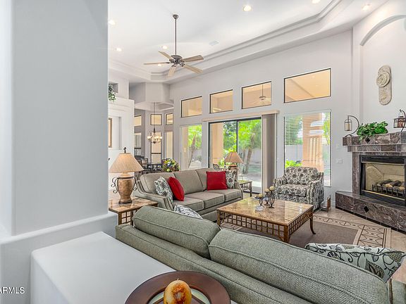 Priced to Sell! Beautiful custom home retreat in the Country Club Estates, an exclusive gated community in Red Mountain Ranch. 2023 Stainless Steel Appliances! Home has been meticulously maintained and the care shows in the details. Open floorplan with soaring 15-foot ceilings throughout and dramatic arches. Ultra-spacious main suite has a fireplace, walk-in shower with separate garden tub, double sinks, & access to backyard covered patio. Home features an oversized three car garage and RV gate. For those who enjoy an active sports life, there is golf, tennis, swimming, handball, & workout facility available for an additional fee. Minutes to freeway access, shopping, & entertainment. The Community is also near the Tonto National Forest with access to Saguaro Lake and the Salt River Hiking and biking trails minutes away from your door! Estate rests on a large lot with mountain views. Must see to appreciate!