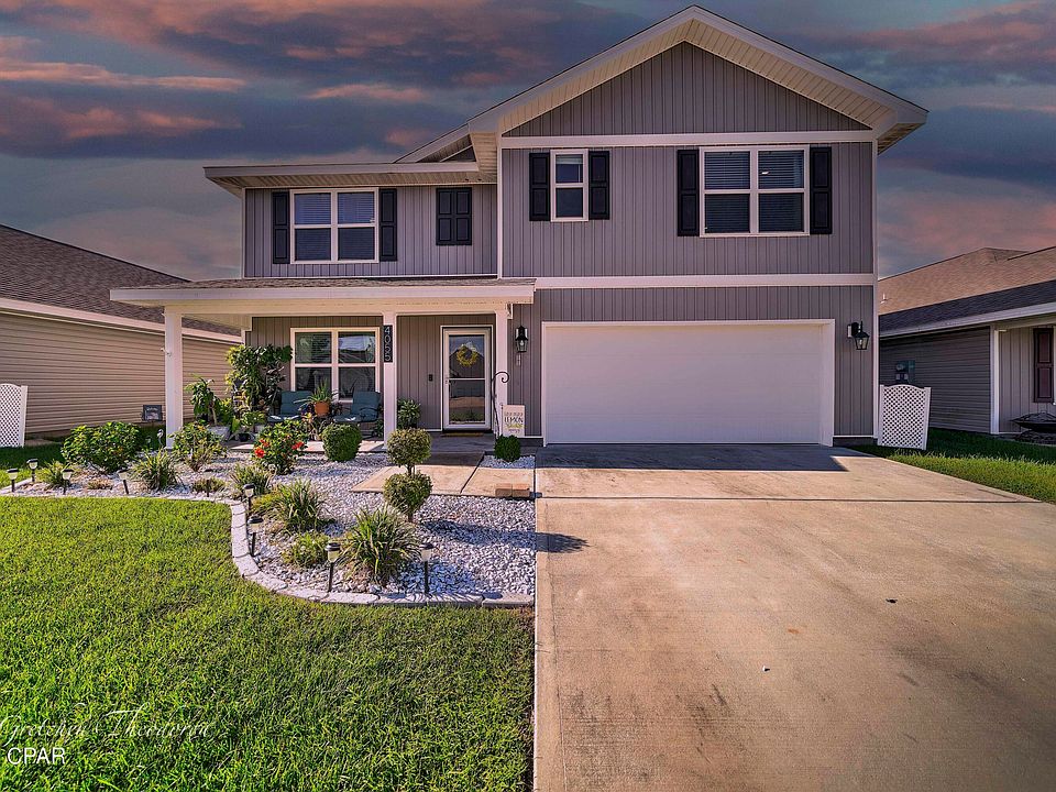 The kitchen will delight the Chef in you with the UPGRADED 2 Door oven, featuring an AIR FRYER! In addition, there are rechargeable under counter LED lights to light up the expansive counter space for making cookies! Upstairs has a roomy bonus area, with many options available. Smart switches in various rooms, smart thermostat, keyless entry, skybell front doorbell and ADT alarm system with blue wave technology. WASHER & DRYER AND ALL KITCHEN APPLIANCES CONVEY!! The location is PERFECT! Quick jaunt and you are on 231, and off to just about anywhere..... fast and easy! Commuting to Tyndall, shopping and the Beach is a breeze!! New Publix is just around the corner with a developing plaza. Please call your Favorite Realtor to see this WONDERFUL HOME....you will be so glad you did!! Buyer to confirm all measurements!