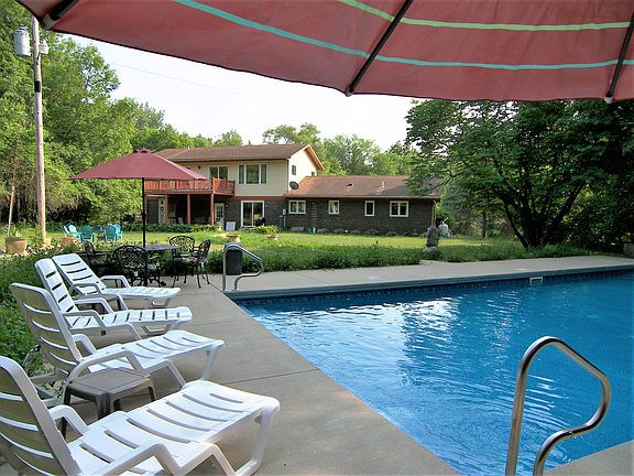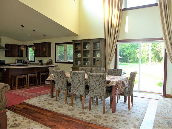 from Harbor Country and Lake Michigan! This home was rebuilt in 2010 and has 25+ ft high ceilings in the Great Room, making the Open Concept main level feel even larger than it is. The upper level main bedroom is a get-a-way in its own right. With a sitting area, 2nd story deck, wrought iron railing and spa-like bathroom you can relax in style. Some additional features include: 300 yr old Burmese teak doors from an Indian Palace (from the Bond Movie, Octopussy), Asian walnut floors and baseboards, 120 yr old Chinese Elm Cabinets, antique vanities w/ hammered Moroccan brass sinks and more. Outside fun continues with an inground/heated 20'x40' pool w/electric cover. The pole barn is 35'x55' for all your toys.