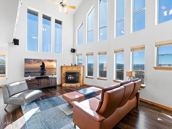 Isolation but just outside of Town with Paved Road BACKING FOREST SERVICE with PEAK VIEWS!! Bonus Home Office PLUS EXTRA LARGE WORKSHOP BUILDING. Horse Arena on Far West Section of property. Rolling hill on northeast side of the land gives the house privacy while allowing majestic views. Paved road access to driveway. Peak Views from Family room/ Dining Room, Loft area, and Primary Bedroom. 4 bedroom plus Open Loft on second level. Primary Bedroom option on Upper Level. Wood Accent Hand Rails and Spindles compliment the Cozy feel of the house. Open Kitchen with double Oven. Backyard fence line is inset from the Forest Service land. Take a stroll in the landscaped backyard complete with a Grape Vine and Outdoor Wood Fireplace.