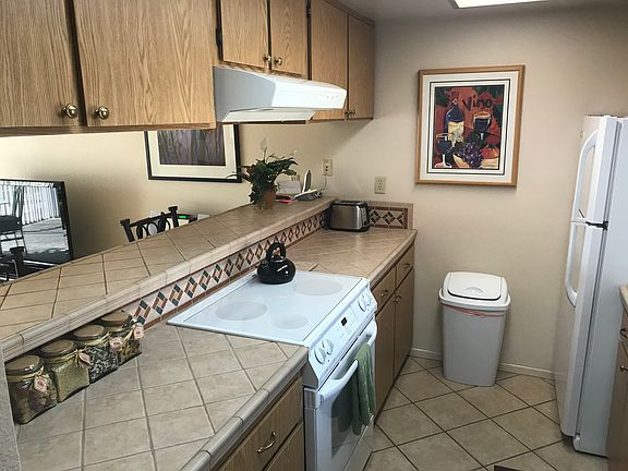 Great buy! Golf Course View Home. This condo is ideal as a vacation getaway or second home! Unique to this model is the addition of a 2nd bathroom, with direct garage access. Direct patio access from the living room with open concept dining area, a bright and cheery kitchen with plenty of storage space. Fully FURNISHED, with Hide-a-Bed in the living room adding extra sleeping space. WESTERN golf course and mountain views greet you as you may enjoy dining al fresco, lit by breath-taking sunsets on your own patio. Just bring your clubs and vacation attire! The community features an 18 hole regulation golf course, a 42,000 square-foot full service club house with a lounge and dining room. 20 community pools and spas, 14 lighted tennis and pickle ball courts and is centrally located to near by world class shopping, dining and exciting entertainment venues. Buyer to verify all information.