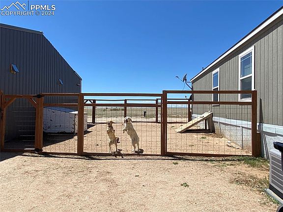 Are you looking for amazing sunrises, sunsets or the most stars you have ever seen? This cozy home sits on 40acres and includes a huge 40x80 3200sf shop, the fully fenced 20 acres in the back would be great for cattle, horses or other animals and views of the Peak do catch your eye. This home has been updated with new doors, drywall, crown molding, paint, new trim and beautiful flooring. Entering the home from the back you will have space to remove your shoes and hang your coat. The master is the first bedroom on the east side of the house which offers a clean attached 3/4 bathroom. Walking through the home you are first greeted by the lovely open kitchen and its huge island. All kitchen appliances are included, Refrigerator, Double Oven, Microwave and Dishwasher. The kitchen overlooks the spacious living room with vaulted ceilings. Down the hall you will find the first bedroom that was made into an office/dog room(could be converted back to a bedroom.) This room is made for you pet lovers. It includes a dog door to the dog run right outside, this is a perfect space for your fur animals. This office would be perfect for those who work from home or a great craft room. Current flooring in the office will be replaced with similar flooring throughout the home prior to closing. Further down the hall is a full bath and bedroom on the west end of the home. Outside, you have 40 private glorious acres to enjoy. There is also a nice sized dog run between the home and shop. Entering the shop you will first notice the garage area. Garage door allows for vehicle access or toy storage. The back of the shop is perfect for those large projects and storage. Additional outdoor storage area is also framed in off the back of the shop. Three sides of the property are fenced but the entire back 20 acres is fully fenced. Just one hour from Colorado Springs, Fountain or anywhere in-between. 20mins to Woolseys Food Center or 30mins to Falcon. Come and explore this outstanding property.