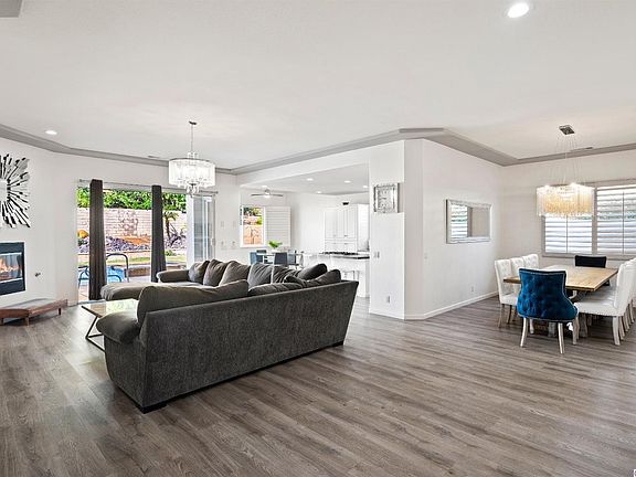 Beautiful Contemporary home located in the highly desirable Hovley Estates Area! stunning open great room concept, Sleek white cabinets with stainless steel appliances, grey/white granite countertops w/ full granite backsplash paired w/ a dark grey quartz center island make this kitchen like no other! Very well-maintained upgraded hardwood flooring throughout entire home. The home has a grand feeling as you enter w/ 10 ft high coffered ceilings to the open great room. Huge formal dining area perfect for entertaining all the holiday parties here in the calming desert area! The huge master suite is located on the opposite side of your guest rooms with a sliding door leading you right out to the pool side. Tons of natural light shining throughout the entire! the. The backyard features a large salt water pool and spa with a spacious patio, perfect for BBQ/pool parties with family and friends! Whether you are looking for a vacation home or a full-time residence, this property is the perfect home to own.