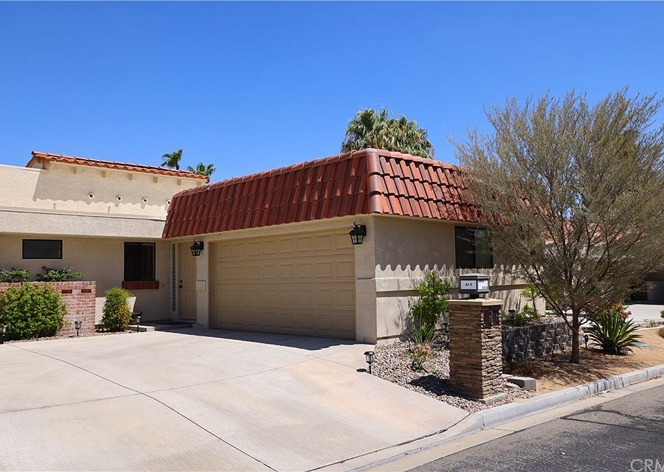 Welcome to this beautifully updated Vintage Plan located in the Palm Desert Resort Country Club. This charming home is offered Turn Key Furnished! The 2 Large Master Bedrooms and bathrooms are on opposite sides of the living area, perfect for privacy! The Kitchen is light and bright with updated white cabinets, granite countertops, pendant lighting and stainless steel appliances. Vaulted ceilings, custom closets, tile flooring and a nest thermostat are just some of the additional features. Sliding glass doors in the living room and both bedrooms open to your large outdoor patio with new patio furnishings perfect for entertaining and overlooks lush green lawns and the sparkling pool/spa is just steps away. The HVAC system has been updated too!This North/South facing location has beautiful mountain views and new front landscape/hardscape and lighting. The addition of a 2 car garage completes this home.The gated community offers 20 salt water pools/spas, 18 hole championship golf course, driving range, pro shop, lakes, newly renovated clubhouse with restaurant, tennis courts/pickle ball courts and 24 hour gated security. This home is perfect for use as a primary residence, vacation rental or long weekend getaways!