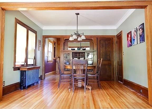 Charming Craftsman bungalow with hard wood floors, natural woodwork, built-in- buffet & maple cabinets. Large upstairs bedroom with great head space and natural light. Updates include; kitchen, 20 windows 2009, roof 2004 & boiler 2003. Corner lot with southern exposure and lovely perennial gardens.
