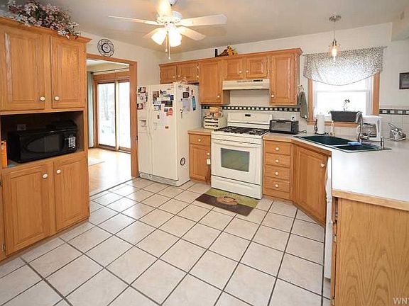 MOTIVATED SELLER! COUNTRY LIVING AND PANORAMIC VIEWS! SPACIOUS 3+ BEDROOM, 3 BATH COLONIAL ON ONE ACRE. A FABULOUS HOME TO ENTERTAIN WITH THE EAT-IN OAK KITCHEN AND COUNTER BAR. THE FORMAL DINING ROOM LEADS TO THE BRIGHT LIVING ROOM WITH CORNER FIREPLACE AND LARGE ENOUGH FOR A BABY GRAND PIANO. THERE ARE TWO BEDROOMS ON THE FIRST FLOOR, PLUS AN OVERSIZED MASTER SUITE ON THE SECOND LEVEL. STORAGE GALORE. THE FULL, WALK-OUT BASEMENT COULD BE COMPLETELY FINISHED FOR ADDITIONAL LIVING SPACE. NEW WELL PUMP, WATER TREATMENT, BOILER, LAMINATE AND CERAMIC FLOORING, NEW ROOF ON THE GARAGE. CALL TODAY!