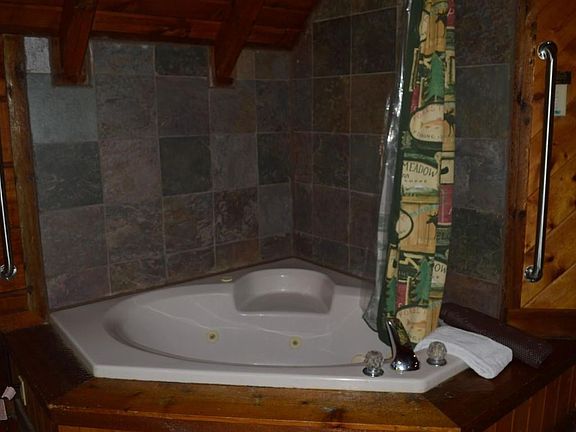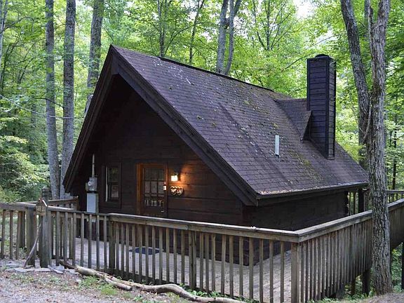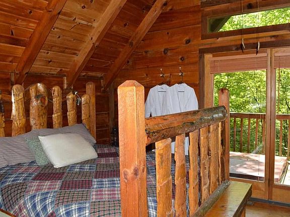 Adorable cabin. It is all open in the interior. Stone wood burning fireplace. Whirlpool tub. Large deck with hot-tub. There are only five cabins so it allows for a lot of privacy and searching through the woods. Home has recently been stained.