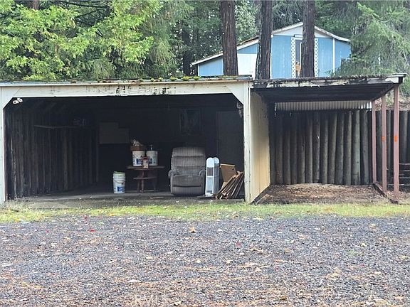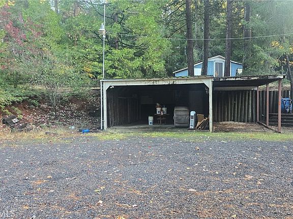 SECLUDED HILLTOP PROPERTY! This home offers great privacy and lots of garage & workshop space, plenty of parking space, room to garden and more!! The home is a 2 bedroom, 2 bath double wide manufactured home with a large dining room & kitchen, walk-in pantry space with a trash compactor, small wet bar area, spacious living room with woodstove, large utility/mudroom with washer/dryer & utility sink plus easy access to the front & back yards. Additionally, the home has an enclosed side porch/bonus room and a covered & screened in front porch that opens to a large uncovered front deck area. The home has some deferred maintenance and is a great fixer project at an affordable price that you can still move into and do projects as you can. A detached 2-car carport with attached storage space with walkways to the house, there is also detached workshop that has an attached RV parking pad and tractor-port, a smaller detached workshop/hobby shop with attached garage space for a quad or small equipment, and several small storage buildings around the property. The prior owner spent years developing this land with sturdy retaining walls, garden areas, many concrete walkways and outbuildings, plus lots of roadwork on the property so you have great usable acreage & access and lots of land clearing! Big bonus is the distant views through the trees to Lake Oroville to the front and the home borders Forest Service land to the back!!