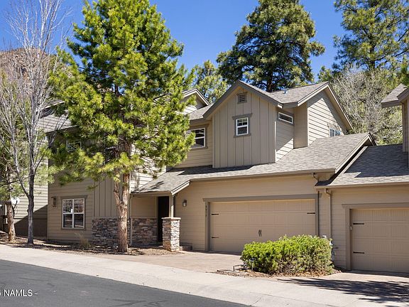 Enjoy direct trail access and stunning Mt. Elden views from your private patio in this beautifully maintained 3-bed, 2.5-bath townhouse at 4056 Pipit Dr. The bright, open main level features a cozy living room with a gas fireplace and a spacious kitchen with an island, ample cabinetry, and newer appliances. Upstairs, the expansive primary suite offers a dual-sink vanity, soaking tub, standalone shower, and two closets. Surrounded by majestic Ponderosa Pines, the outdoor space includes a composite deck—perfect for relaxing, entertaining, and enjoying low-maintenance living in a peaceful, nature-filled setting. Carpets were replaced in 2023 for a fresh, updated feel, making this a truly turn-key primary residence or a lock-and-leave second home in the pines.