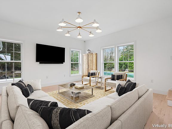 Be the first to experience a luxurious summer escape in Sag Harbor at this newly furnished, never-before-rented, coastal Cape. With four well-appointed bedroomsthree offering king-size beds and their own TVs, and a fourth featuring a twin trundle and cribthis home provides comfort and convenience for all. The primary en-suite features an oversized closet, a luxurious soaking tub, a separate shower, and a dual vanity. A second full, modern bathroom with a tub is also located on the upper level.The main level is thoughtfully laid out with a stylish bar sitting room, a cozy private den with TV, a spacious family room with oversized TV, a formal dining room, and a sleek, modern kitchen. A separate laundry wing with full bath and its own exterior entrance adds to the ease of indoor-outdoor summer living.Set down a long, private flag lot, the expansive backyard offers the ultimate setting for relaxation. Take a dip in the oversized heated vinyl pool with a brand-new liner and heater, enjoy outdoor meals at the dining table for eight, fire up the BBQ, or unwind on the ample lounge seatingall perfect for soaking in summer days and breezy evenings.Ideally located just minutes from the charming shops, beaches, and renowned dining of Sag Harbor Village, this home is the perfect backdrop for your unforgettable summer getaway. Experience pristine comfort and effortless elegance in this serene Sag Harbor retreat.