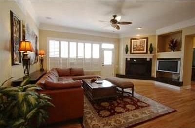 Elegant home. Walking distance to golf course. Front patio perfect for entertaining. 10 ft.ceilings. 42 inch cherry cabinets. Stainless steel appliances with double oven. Built-in speaker system. Prof.landscaping with sprinkler system & outdoor lights. Hardwood floors. Plantation shutters and so much more.
