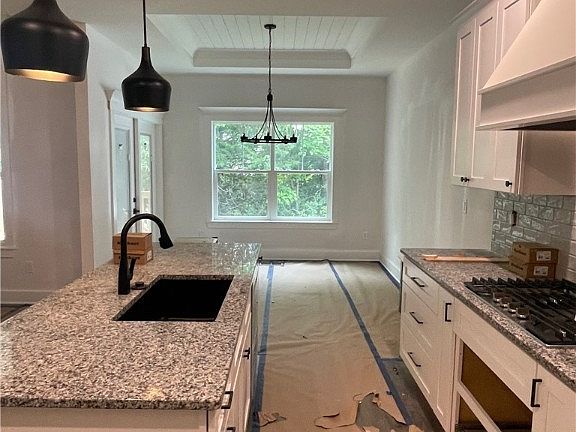 OPEN MONACO 3 BR/2B FLOOR PLAN ON A DAYLIGHT BASEMENT W/PLUMBING & ELECTRIC ROUGH-INS: trim details include 12' coffered ceiling in FR, tray ceilings in dining area & master bedroom, shiplap throughout, & barn door to master bath; custom tile in kitchen backsplash & walk in master shower; granite countertops, island w/breakfast bar, pantry, stainless appliance includes dishwasher, microwave, wall oven, hood vent & gas cooktop; rev wood in main living areas; front exterior landscaped; concrete porch/sidewalk/driveway; covered deck; located near I65/I265, the east end bridge, shopping, dining, schools, churches, & entertainment; MUCH MORE. AGENT IS RELATED TO SELLER!