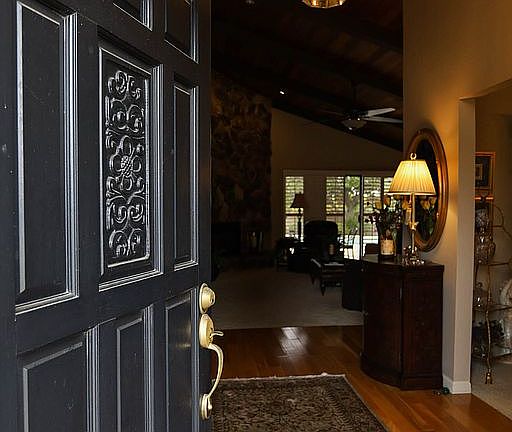Custom county home sits on 1 acre of land and features owned solar, with 44 panels, 3 large bedrooms, 3 baths (all doors are 3 ft. wide), family room, formal living and dining rooms, an office with a built-in desk and cabinets. The kitchen has a dining area with a built-in hutch and breakfast bar which is open and overlooks the family room that has a vaulted ceiling, a fireplace and sliding doors that open to the backyard. The master bedroom has double French doors that lead to the backyard. The master bathroom comes with his & hers closet, double sinks and a step-in spa. The laundry room has a sink, craft area and lots of storage, it has a bathroom with a shower and access to the backyard. Outside is a covered patio with a large pool and spa, both heated, a wooden deck, shade trees, and window pass-through counter for entertaining. The backyard is enclosed with a block fence. The property has oversized 3-car garage with custom cabinets, work bench and sink. It also includes covered RV