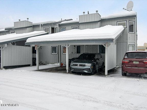 Desirable 2bed, 1.5bath townhouse-style condo in Anchorage is located near military bases offering a convenient & comfortable living option. The end unit provides extra privacy, while the carport offers covered parking from AK weather! Living room features a cozy fireplace, making it the perfect place to relax after a long day. Bedrooms are located on the upper level. The outside storage unit ....& fenced yard offer additional space for belongings and a private outdoor space to enjoy.