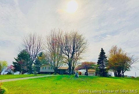 Spacious bi-level home minutes from Hardy Lake. 4 bdrms, 2 full baths. Living rm. Family rm w/FP. Kitchen w/stove, refrigerator, DW and microwave. Master bdrm w/jetted tub. Extra room could be office/bedroom . Large utility rm. Covered front porch. Covered back porch or Gazebo overlooking your landscaped 2.22 acres+/-. 3 car detached garage. 32x48 pole barn. Possible mother-in-law or guest suite. Minutes from I-65.