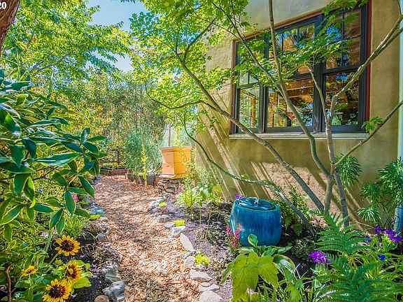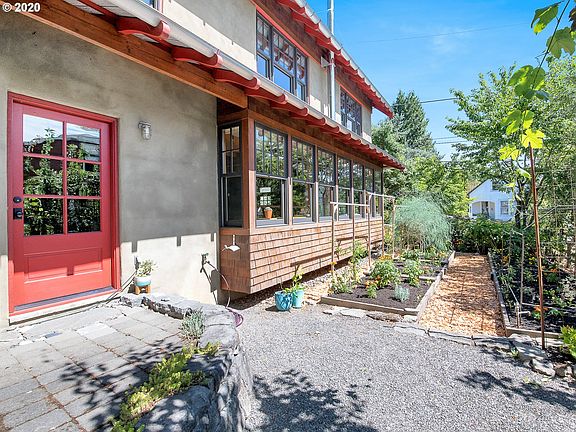 Urban dream with lush + private landscaping, coveted NE PDX. A true sanctuary. Winner of Green Building awards. 3 bdrms up, with hall desk, open main level with a much desired detached home studio/office. Sustainable + reclaimed materials. This home tells a story. Hand plastered walls, radiant heat, craftsman cabinetry. Flow harmonizes w/outdoors, firepit, inspired landscape + raised beds. Max S exposure for the yard and solar gain for the home, light and bright interiors. Centrally located. [Home Energy Score = 10. HES Report at https://rpt.greenbuildingregistry.com/hes/OR10046364]
