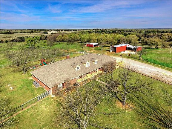 Beautiful Custom Brick home located on 14 plus acres. Right in the middle of Horse Country. Spacious 4 bedroom 3.5 bath with an office that could be a 5th bedroom. Large living and Kitchen with huge cooks pantry. Beautiful rolling hills and tress. Outside features a nice shop with RV parking, pecan trees, covered patio and much more. Hard to find small acreage property.