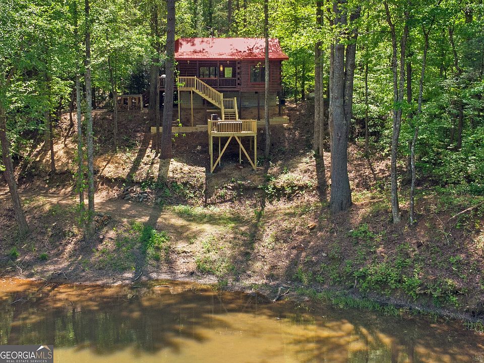 Welcome to Crystal Lake Lodge! A Cozy Lakefront Log Cabin only minutes from Historic Downtown Ellijay & Blue Ridge With a Brand New Hot Tub on an Elevated Deck overlooking the lake! Incredible location is perfect for hiking, fishing, visiting waterfalls & more. Perfect romantic getaway or family retreat. Enjoy this serene and fully furnished 2 Bed + Loft and 2 Bath Real Log Cabin nestled in the North Georgia Mountains! Sip your favorite drink on the Covered porch swing overlooking the lake & watch the Wildlife! Unwind on the huge balcony overlooking lush green foliage and a 6.25 acre (+/-) secluded lake. The wood-burning fireplace is a wonderful focal point in the great room-complete with 10.5' ceiling. Pine flooring, walls & ceilings lend warmth throughout. Set on approx 3 acres with 240' (+/-) of creek and lake frontage, this convenient get-away is only 90 minutes from Atlanta. ~ Fast 100 Mbps WiFi
