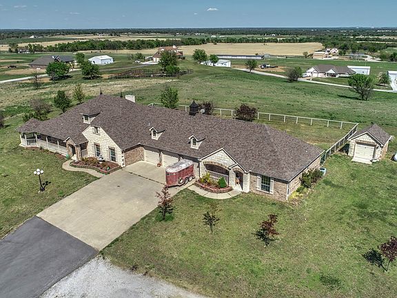 See for miles w/great view! Located between B'ville & Tulsa, Skyhaven Airpark Subdivison! Home w/a connected Mother In-Law area. 3 Car garage. Main Home has a nice PF in the Living Area & Open Plan to Kit. Custom Cabinets & Granite Counters. 4Bds & 3.5Bths. Pass Thru Florida Room to Mother In-Law Wing! Designed for Privacy, Full Bath, Bdrm. Addn 2 Acs + Shop available to the South.