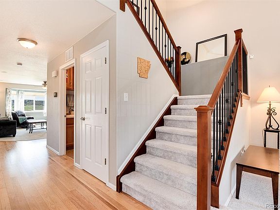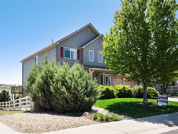 This beautiful home shows huge pride of ownership inside and out*Virtually spotless, pristine condition*Fantastic location backs and sides to greenbelts, with sweeping valley views*Sellers have taken such great care of this home - New kitchen appliances, furnace, central A/C, water heater, carpet*Updated and upgraded finish work throughout, including flooring, fixtures, 6 panel doors, stair rails*Tasteful mix of wood, tile, carpet flooring*Big family room w/ surround sound opens to beautiful kitchen w/ granite counters, TONS of cabinet and counter space, base cabinet pullouts, new stainless appliances, double oven*Main floor office/bedroom with adjoining three-quarter bathroom*Pro-finished walkout basement w/ great room, bedroom, bathroom, and unfinished storage area*Spacious primary bedroom suite with vaulted ceilings, huge walk-in closet and updated 5-pc bathroom*Large upstairs loft*Composite deck overlooks big, flat, beautifully landscaped back yard, and features remote controlled retractable awning, gorgeous sun & moon rises, and dramatic mountain/valley views*3-car tandem garage*Arguably the best lot in the neighborhood - big, backs and sides to green spaces, killer views, short walk to community pool, fitness center and trail system*New interchange at I-25 and Crystal Valley Parkway under construction for easy access