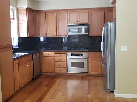 Available for tour and renting from Jan 1st. Freshly painted and refinished cabinets! House features hardwood flooring on the living and family spaces with shutters for all windows at this level. High ceiling in living room with fireplace and a sliding door that opens onto a spacious patio. Granite counter top kitchen with microwave, oven, dishwasher, gas cooking range and french door refrigerator. Ample cabinet space in kitchen. Powder room on the family and kitchen level. Spacious master bedroom with stall shower and tub bath and his and her wash basins. Attached walk in closet with ample space. Two spacious bedrooms and full guest bathroom with bath tub. Laundry room with LG front loading washer and dryer and lot of storage. Attached two car side by side garage with crawl space for storage. House is walking distance to Rivermark shopping plaza, Safeway, Northside public library and beautiful parks. Very close to freeways and tech companies like Oracle, Intel, Cisco. 2 minutes walk from Don Callejon school. Few minutes walk to VTA light rail and bus stations. Major tech companies ply their buses walking distance from the house. We will pay the HOA which covers maintenance of outside amenities and water and garbage. Renter will be responsible for the gas and electricity utilities.