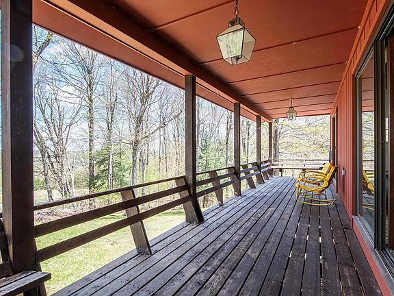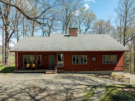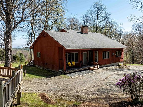 Perched perfectly amidst 18 tranquil acres of woodland, this sweet contemporary residence in Guilford features three bedrooms, two baths, and breathtaking eastern views overlooking the preserved meadows of neighboring Sunrise Farm and Governor Mountain. Inside, vaulted ceilings and a great brick fireplace radiate warmth and charm, while expansive windows and sliders in the living room and primary bedroom offer captivating panoramic views. Step out onto the generous twenty-foot covered deck, perfect for unwinding or hosting gatherings amidst the serene beauty of nature. Enjoyed by the same family for 50 years, this property is now being offered for your updates and customization to make it your own. Complementing the residence is a versatile 32’ x 40’ barn, providing ample space for a workshop and storage of equipment. Explore the possibility of converting it for equestrian use or agricultural endeavors, and envision opening up the surrounding land for pasture or cultivation. Enjoy the idyllic essence of rural living with an abundance of countryside pleasures right at your doorstep. Your neighbors at Deer Ridge Farm trade the use of the sugarbush for maple syrup! Conveniently situated just five miles from Route 9 in West Brattleboro and 15 min. from the middle of town. The property offers both seclusion and accessibility, an exceptional opportunity for a truly remarkable retreat. 2.5 hrs. Boston. 4 hrs. NYC & Montreal.