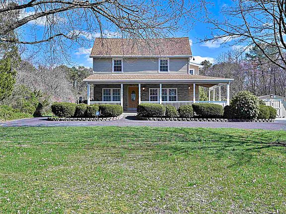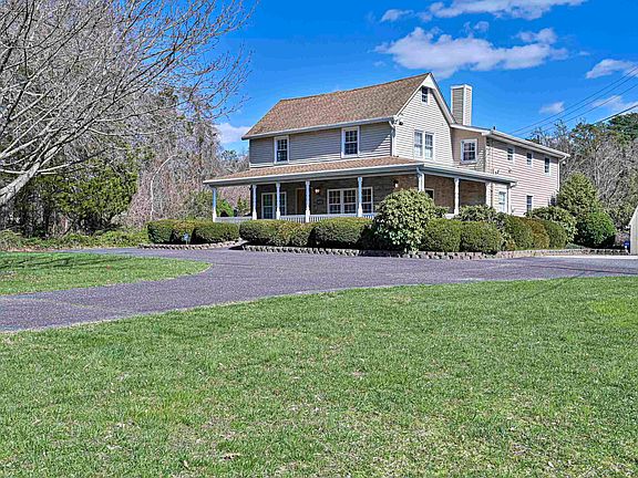Nestled on 7 pristine acres of picturesque land, this two-story farmhouse offers the perfect blend of rustic and modern conveniences. Located in the heart of Egg Harbor Twp, close to shopping, schools, and major roadways, as well as the beach and boardwalk, this offers a sanctuary of peace and tranquility The inviting wrap-around porch instantly feels like home. Many upgrades in this 5-bedroom (one of them first floor) home. There is plenty of room for the entire family to spread out. The dining room has a brick hearth and chimney connection for a wood burning stove, the kitchen has a lot of natural light and upgraded appliances. Off the kitchen is a walk-in pantry and doors to an oversized wooded deck. The 2nd Floor has an entertainment area is prime for movie watching or gamers or music buffs and four bedrooms with spacious washer/dryer room. Need space for your tools and DIY projects? The 16x44 shed is a Contractor's Dream! Whether you are a woodworking aficionado or a gardening guru this versatile space has your covered. The detached 2800 square foot garage has electric and heat and an office area w/ its own entrance and built-outs. Ample parking and storage. This garage is both practical and versatile. Don't miss out if you have been dreaming of a farmhouse retreat or need a place for all your work gear and family, Look No Further and Make Appointment Soon.