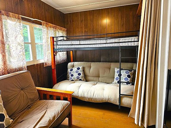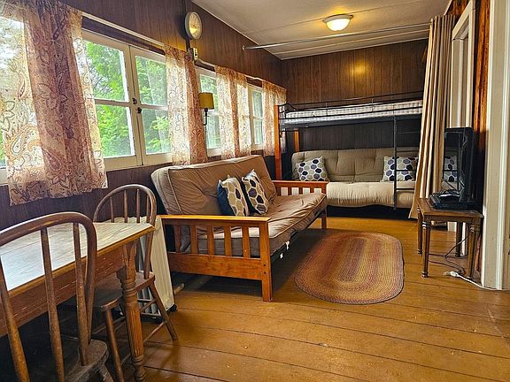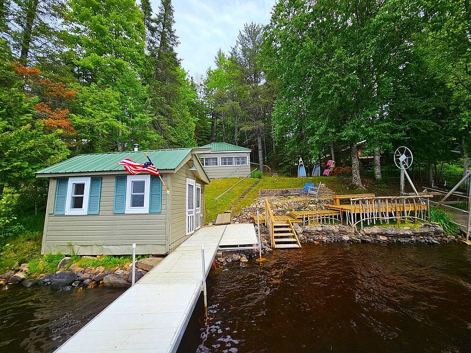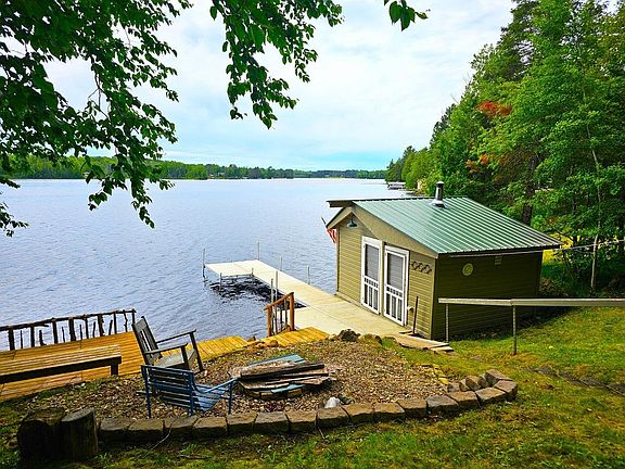 Adorable 3-season cabin on Pine Lake, complete with lakeside bunk house, 60 feet shoreline. Bask in breathtaking sunsets, exceptional fishing, swimming, and ATV adventures at this cozy one-bedroom cottage, featuring a lakeside living room with nice lake views. Kitchen is equipped with stove and refrigerator, and the cabin comes fully furnished with beds, dressers, chairs, and tables, ready for you to settle in. The lakeside bunk house offers a small resting area and an attached storage space for all your fishing and swimming gear, including a homemade lake-fed shower system. While there is no traditional plumbing, the property includes a compost privy toilet for convenience. Enjoy sitting around the lakeside fire pit, pier and boat lift, and store your equipment in the additional shed.