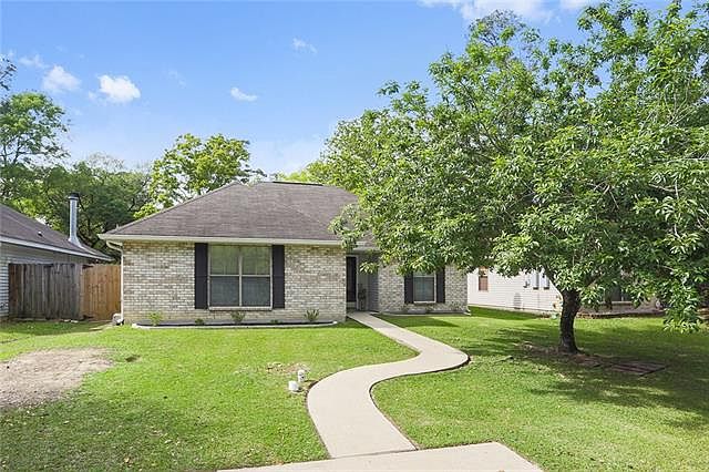 Adorable Home in DEMAND school district!! This 3 Bedroom 2 Full Bath home offers a family living area with a wood burning fire place, a large kitchen and dining area, and generously sized bedrooms. NO CARPET anywhere in the home, master bedroom has real wood, tile in kitchen and dining area,laminate wood in the other areas of the home. Beautifully landscaped yard in a quiet neighborhood, just minutes from I-10 and I-12. Completely fenced in back yard with a covered patio great for entertaining!