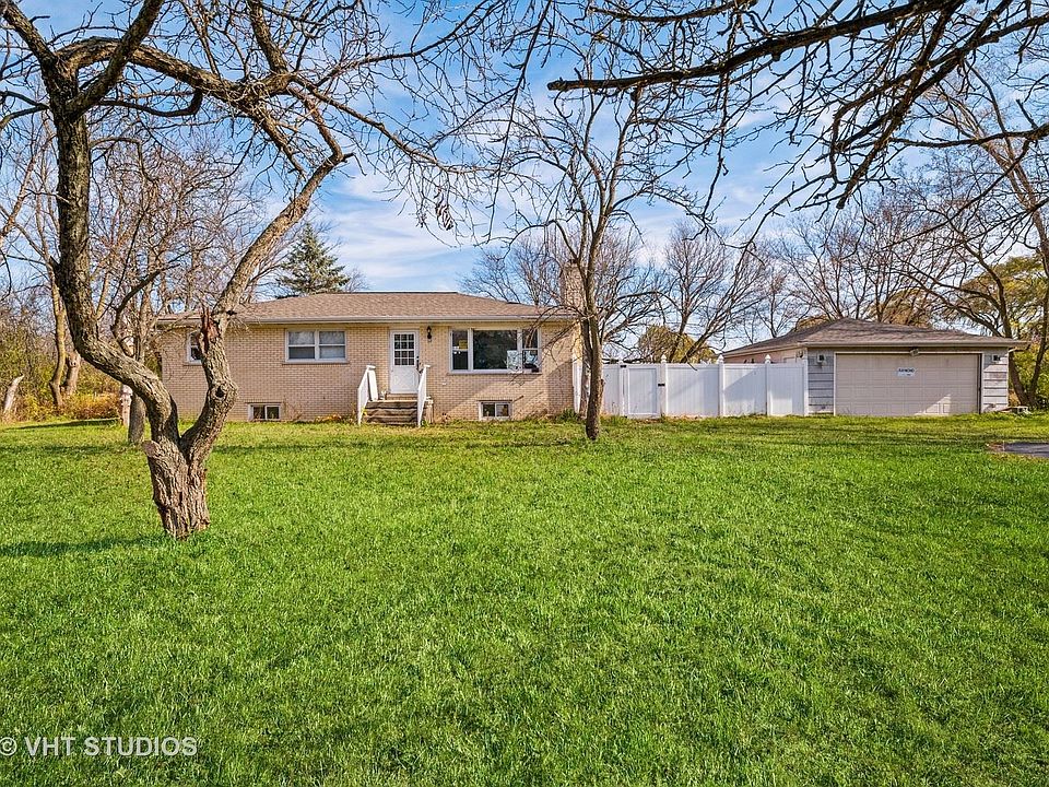 Almost FIVE ACRES OF FLAT, DRY LAND! There are several fruit trees, and other trees surround the property at the approximate lot line. See picture #12, other properties beyond the trees. There is no pond or standing water on this property. Unincorporated Antioch and Township office said there are many options available on this property, just call and they can let you know. There are not many brick homes in the area, this one has a full basement, 3 bedrooms and there is a 2 car detached garage. Here are some other details: Newer storm windows, new French doors to deck, vaulted ceiling in main living area with an open floor plan/great room, white oak floors, an updated bathroom, kitchen and bath have Solar Tubes, well pump and water heater replaced and furnace is about 5 years old and so is the roof, gutters and soffit. Some projects are incomplete and there is room for your own ideas. Priced for an "as is" sale. Total value is in both land and house.