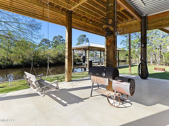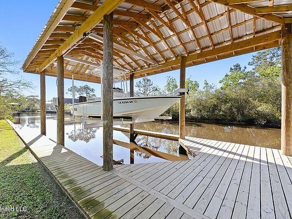What a beautiful waterfront house in Bay St. Louis. Less than 2 years young (like brand new) and sits on 2 lots with 100' of bulkhead, a pier, & boat house. The house offers 3 beds, 2 baths, crown molding throughout, open floor plan, spacious kitchen with quartz counter tops, walk-in pantry, wood burning fireplace, living room & porch speakers, custom blinds, built-in bunk beds in one bedroom, custom glass shower in each bathroom, security system, & so much more. The exterior offers a large screened porch, 15' x 15' storage, fish cleaning station, dog run, fans, and lots of room for entertaining! Refrigerator, washer, & dryer remain. The boat lift will hold up to a 30-foot boat and has a 16,000 lb rating. Come make this house your new waterfront home!