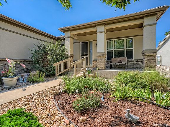Beautiful Steamboat Model with 3 bedrooms plus an office. Open floor plan with lots of natural light throughout. Wonderful location backing to green space and walking path. Partial mountain views from rear bedrooms and deck. Enjoy the sunny front porch and large covered back deck overlooking the green space and mature trees. Large living room with a cozy gas fireplace. Lovely kitchen with granite counters and an island. Large primary bedroom with a sunny bay window overlooking the green space behind. 5 piece primary bathroom with soaking tub. Large laundry room with utility sink, cabinets and plenty of counter space. Desirable South facing driveway. Full sized garden level basement perfect for storage, hobby room or to finish as you please. New microwave & water heater, newer furnace. Anthem Ranch is an award winning 55+ active adult community with over 48 miles of open space trails, a beautiful clubhouse, indoor and outdoor pools, tennis, pickleball, fitness center, fitness classes, game rooms, billiards, indoor track, a library and more. Over 50 homeowner clubs to enjoy with everything from biking, hiking, pickleball, tennis, bridge, book clubs and more. Be sure to tour the Aspen Lodge during your visit to learn what this resort lifestyle is all about.