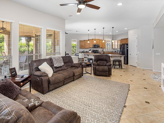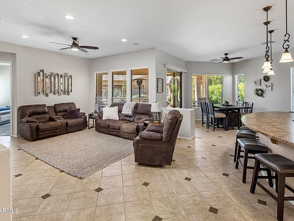 Welcome to this stunning 2-bedroom (plus den), 2-bathroom home located in a desirable 55+ community in Gilbert, Arizona. As you enter, you'll be greeted by a spacious and inviting living area with abundant natural light. The den, located off the main living area, provides a flexible space that can be used as a home office, media room, or even an additional guest room. The kitchen is beautifully designed and features modern appliances, ample cabinetry for storage, and a convenient center island, perfect for those who enjoy cooking and entertaining. The master suite boasts a generous layout, offering a private retreat with an attached en-suite bathroom. One of the highlights of this property is the private pool, providing a refreshing oasis for relaxation and enjoyment... during the warm Arizona summers. The backyard is landscaped with care and offers a lovely setting for outdoor gatherings or simply unwinding by the poolside. Added value of an extended garage for more storage and room for your golf cart. Residents of Trilogy have access to a range of amenities, including a clubhouse, fitness center, golf courses, pickleball walking trails, and more. Don't miss the opportunity to own this beautiful home!