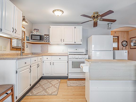 Located in the Shores of Interlachen is this 3 bedroom updated knotty pine cottage. Spacious kitchen with nice storage, newer gas fireplace in the living area that overlooks the lake, ¾ bath, and two bedrooms. Additional space off the private deck can be used for your third bedroom, or an additional gathering space. Stunning sunsets with the westerly views of lake through the tall, towering pines. The common area includes a beautiful sand beach great for swimming. Kid lake has exceptional fishing and is located in the heart of lake country near public land for hunting or hiking.