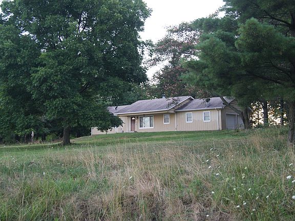Beautiful piece of property with 80 acres great for farming and hunting with 3 ponds, 60x30 barn, other barn has electricity and shop enclosed area, with great panaramic views you really have to see. The back 40 acres is mostly open perfect for running cattle or haying, with the front 40 about half wooded great for watching the wildlife. The 3,200 sq ft 3 bed 2 bath basement home with 2 car attatched garage and paved driveway has a root cellar, new heat pump/AC in 2007, new flooring and roof within the last 10 years, newer vinyl windows, the large eat in kitchen has lots of cabintry and with dual built in ovens, washer and dryer stay with the house. You will love the stone gas fireplace with custom built bookcases and the views from every direction with the house up on a hill.