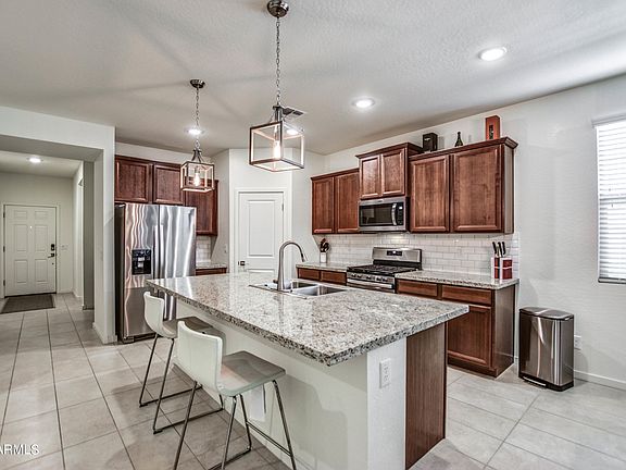 You will love this amazing 4 bedroom, 3 full baths, AND a flex room for tons of possibilities. This is one of the most highly requested floorplans. The 4th bedroom is an en suite located away from the main living area, great for guests with its own private bathroom. This beautiful kitchen features loads of cabinets, gas cooktop, beautiful granite countertops, walk in pantry, and a huge island. Stainless Steel appliances included. There are so many upgrades throughout this home. 2 car garage. Backyard landscaped. Just minutes away from grocery stores, restaurants, and shopping, and San Tan Regional park for outdoor adventures.