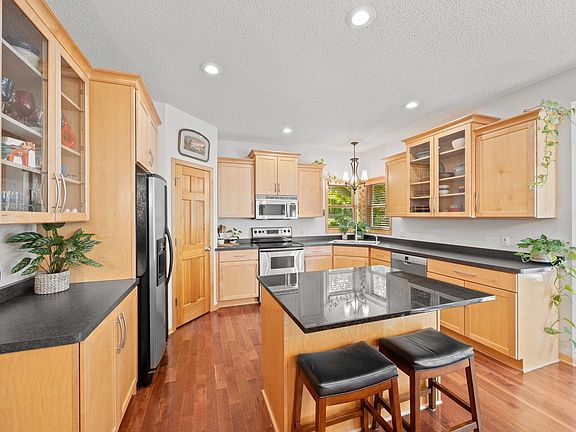 Enjoy an open-concept layout with maple hardwood floors and cabinetry, Marvin Integrity windows, and stainless-steel appliances. The 2nd level features 3 bedrooms, including the primary suite, and a full bathroom. The main level offers a large informal dining room, a cozy living room with a fireplace, and a versatile office space. The fully finished walkout basement includes bedroom, full bathroom, large family room, wired for a sauna, and ample storage! The 3-car, attached, garage is insulated and has a gas line roughed in to receive a garage heater.