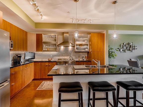 Beautiful condo with incredible views of Jefferson Park and mountains. Can walk out the door to the Platte River trail and to the local coffee shop and property. Denver's first LEED Certified Silver building. Next to Awake, Elitches, Briar Common Brewery & and many Highland's restaurants and bars! Amazing outdoor living on west-facing, HUGE 26' x 8' balcony overlooking scenic Jefferson Park! Sunny, open floor plan. Super spacious kitchen is a cook's dream and a rare find in the condo market! Quartz counters, pantry, large island with seating, modern flat-surface cabinetry and stainless appliances! Sunny master suite with walk-in-closet and front loader washer/dryer that are included. Luxury master bath with dual sink raised vanity, modern lighting, and over-sized tub/shower! 2nd bedroom with closet and pocket door. Building has solar! Unit includes 1 storage unit & 1 garage space. 2nd parking spot avail for purchase, River Clay boasts secured entry, elevator access and a great, private workout facility. Fantastic location and community. Renter responsible for utilities (which are minimal). One parking spot and storage unit, pets fine with deposit