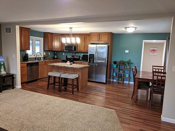 Updated rambler with three main floor bedrooms and full bath. Large open concept including family room, kitchen, and dinning area, with many updates throughout. Fully finished basement with two bedrooms (both with walk in closets) and family room. Basement also includes; full bath, laundry room, and partially finished large storage closet. Single stall attached garage. Driveway allows 2 vehicle wide parking. Chain link, fenced in backyard yard, with 6ft wood privacy fence on north property line. Backyard also provides two large concrete patio areas.