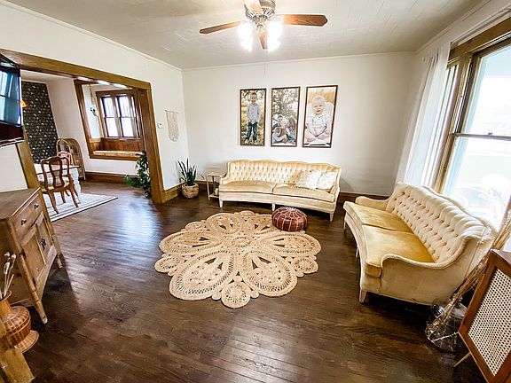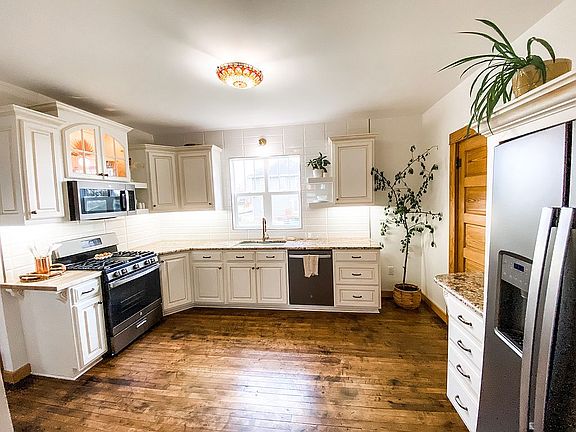 This newly renovated home is located in the most darling neighborhood at 406 2nd St NE in Waukon, IA. It features 3 bedrooms and 2 bathrooms. The cozy living room flows seamlessly into the formal dining room. The kitchen boasts gorgeous cabinets, granite countertops, sleek ceiling-height tile backsplash, and new slate appliances. The home offers endless character. The original hardwood floors were refinished throughout, the original trim and doors remain, and an adorable built-in window seat makes the perfect reading nook or lounging space. The primary bedroom has two oversized walk-in closets. The additional bedrooms are spacious and also have large closets. The exterior has an abundance of character, too. The cedar shakes add dimension to the siding, and the large porch makes for an enjoyable time swinging or playing. The side and back yards are very large and flat, and have a private area for entertaining friends around the campfire. The sidewalk and driveway are freshly poured. Recent updates include kitchen, bathrooms, flooring, furnace, water softener, lighting, and concrete. The home also has all new kitchen appliances that are included. The exterior has been professionally painted a gorgeous, timeless color. The home has central air and forced heat. Located in a nice, quiet neighborhood, this home offers the sweetest neighbors in all directions. It's conveniently located a couple blocks from the school bus stop and just down the road from the 9 hole golf course.