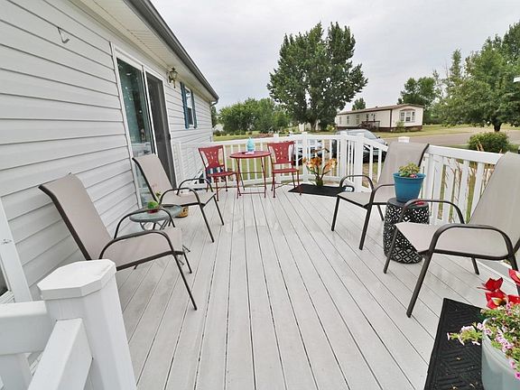 Welcome to this well-maintained home located in SE Minot's Woodridge Mobile Home Park. The kitchen features a pantry for additional storage and a breakfast bar and is open to the dining and living rooms. Enjoy additional space for entertaining on the deck directly off the dining room. The spacious master bedroom has a walk-in closet and bathroom with dual sinks, a corner freestanding tub, and a shower. Two additional bedrooms and a full bathroom are located on the other end of the home. This home is conveniently located near shopping and restaurants. Also, within walking distance you can enjoy many activities at the nearby park such as splash pad, basketball courts, picnic shelter, and playground. Call today for a tour!!